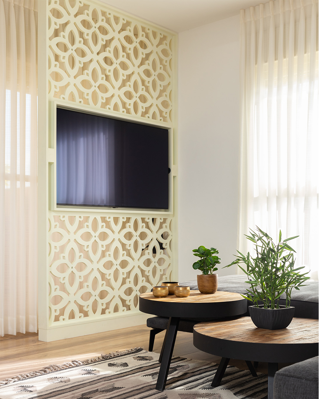 בתמונות: קיר טלויזיה דגם רקפת. עיצוב פנים: דלית אלון. צילום: נויה שילוני