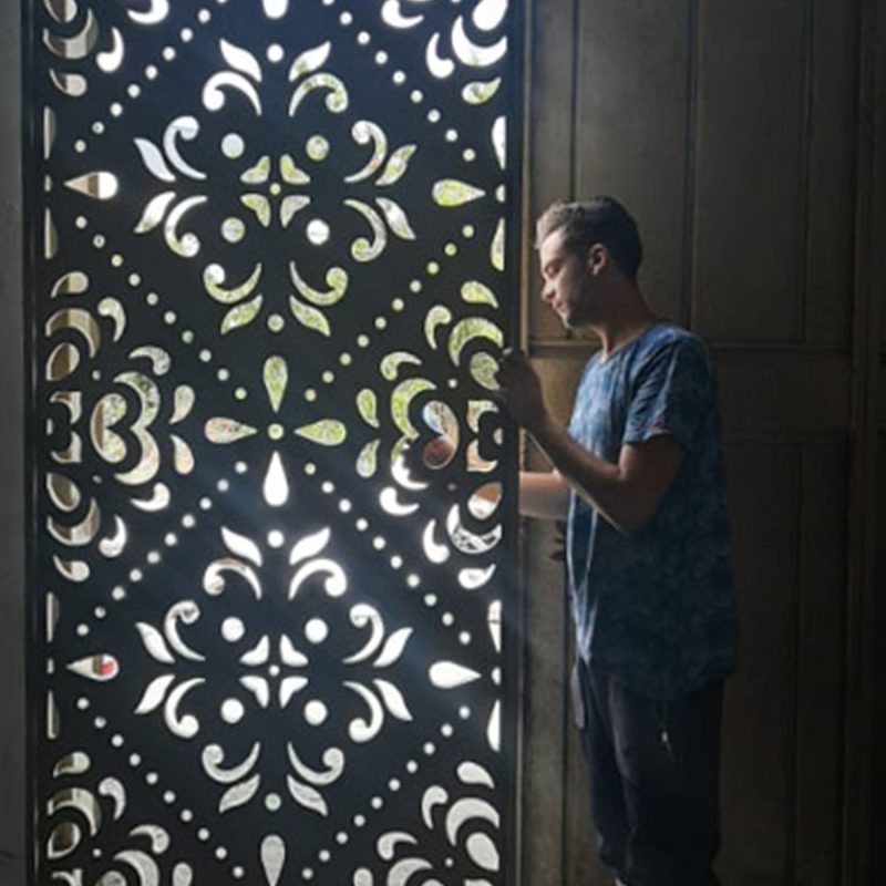 מעקה מתכת משרביה בחיתוך לייזר דגם רקפת